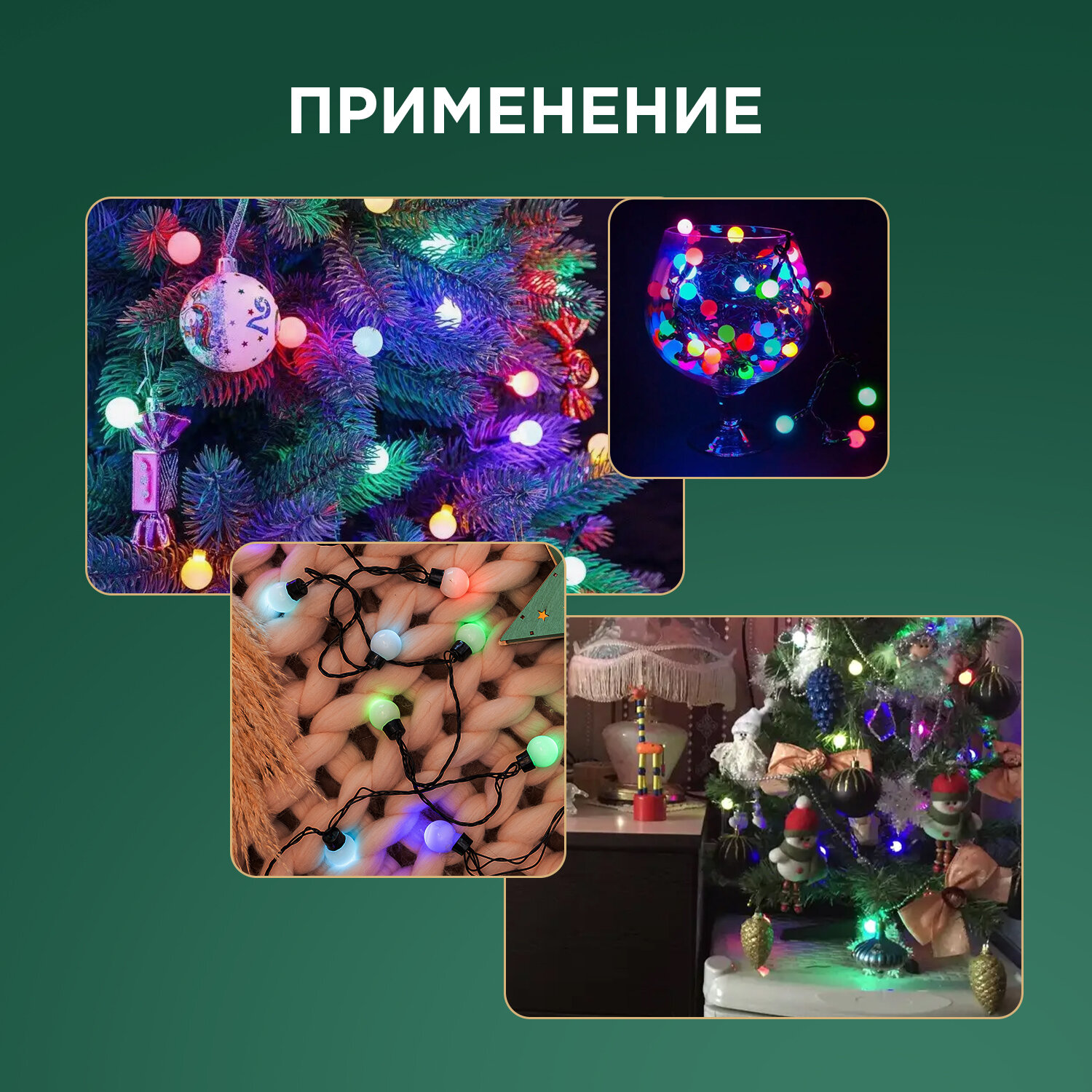 Гирлянда светодиодная «Шарики» 5м d25мм 25LED RGB 6Вт 220-240В IP20 провод ПВХ темн. зел. Neon-Night 303-559 информация: