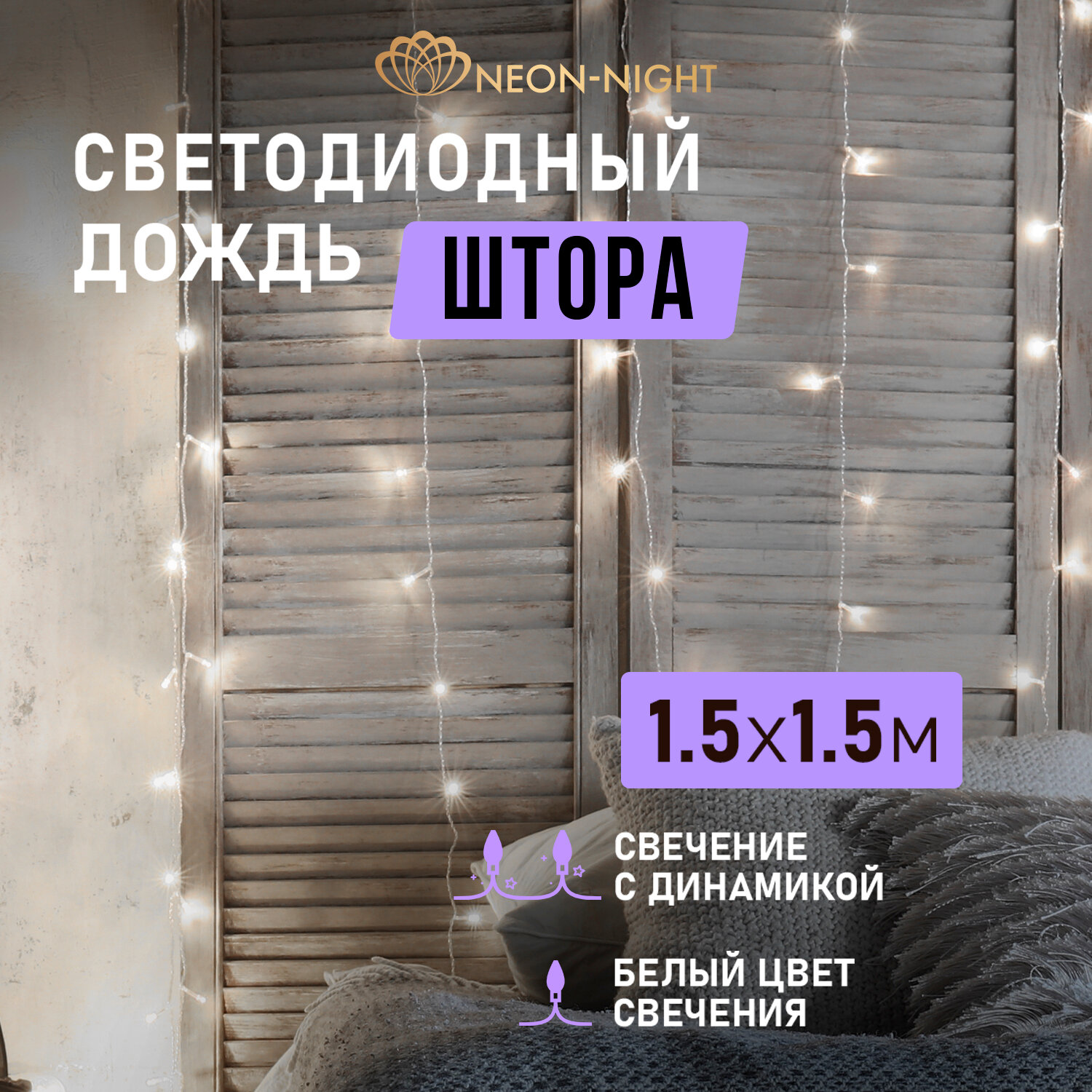 10 цен на Гирлянда новогодняя светодиодная Neon-Night Дождь-штора 144 LED, 1,5х1,5м с контроллером, холодное белое свечение