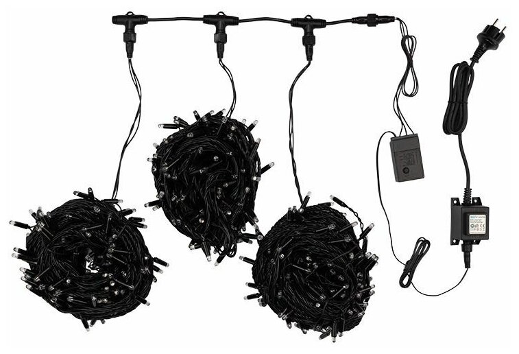 Уличная светодиодная гирлянда Neon-Night "Клип-лайт" с 8 режимами, белое свечение, 3 нити х 20 м