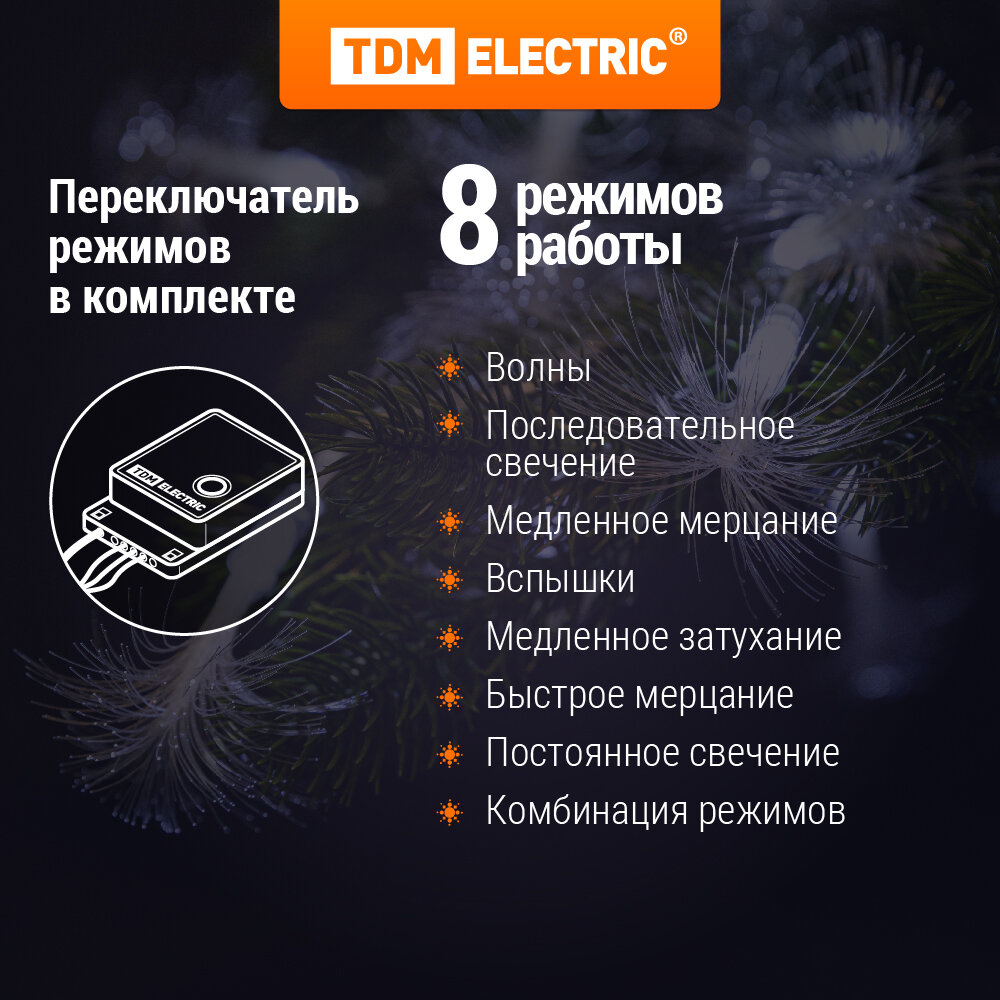 Гирлянда TDM СГ100MЗ10, 10м, 220В, разные режимы свечение, разноцветный цвет, IP20