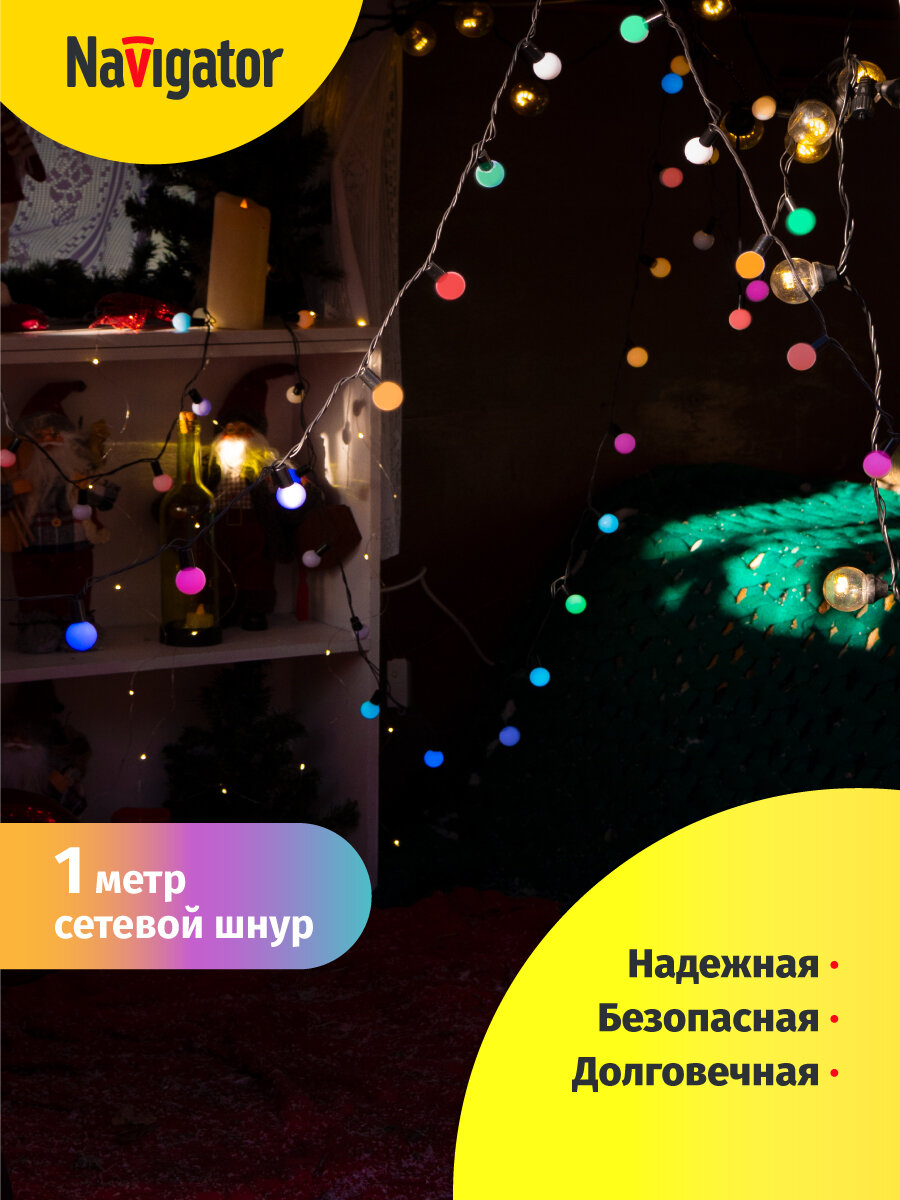 Отзывы на Гирлянда светодиодная Navigator 61 837 Шарики, 8 м, разноцветный, IP44