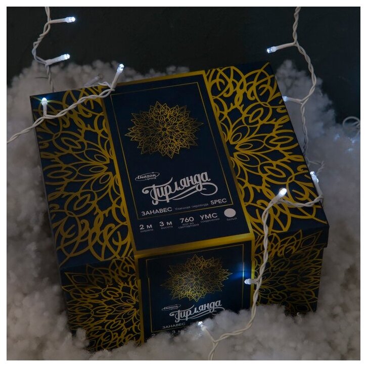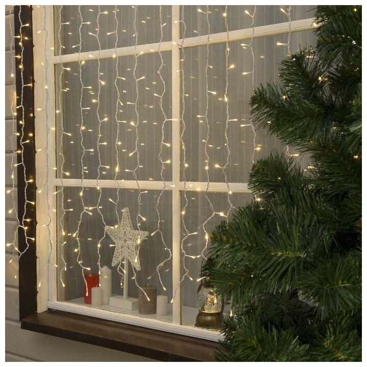 10 цен на Гирлянда "Занавес" 2 × 3 м, IP44, УМС, белая нить, 760 LED, свечение белое, мерцание, 220 В
