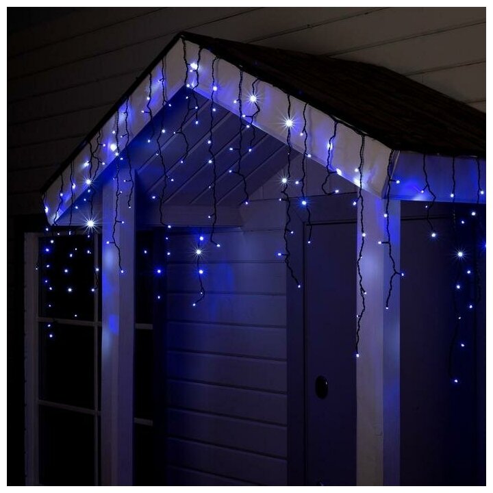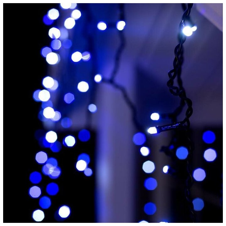 Гирлянда «Бахрома» 4 × 0.6 м, IP44, тёмная нить, 180 LED, свечение бело-синее, мигание, 220 В