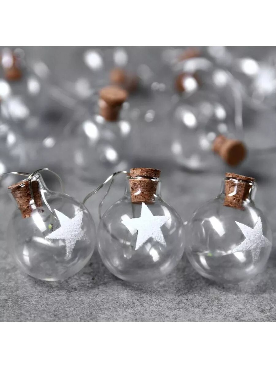 Гирлянда «Нить» 1.6 м с насадками «Шарики со звездой», IP20, информация: