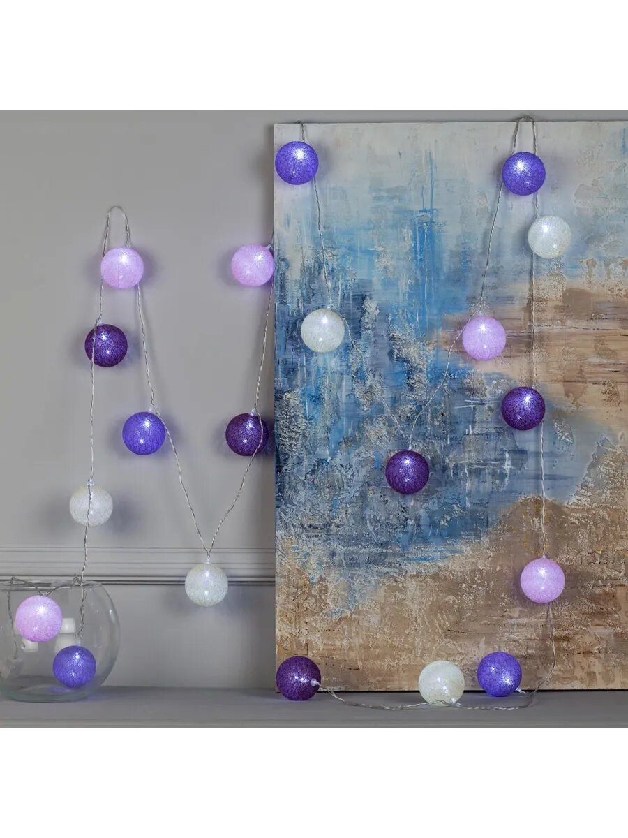 Отзывы на Гирлянда «Нить» 5 м с насадками «Клубки лиловые», IP20, прозрачная нить, 20 LED, свечение белое, 220 В