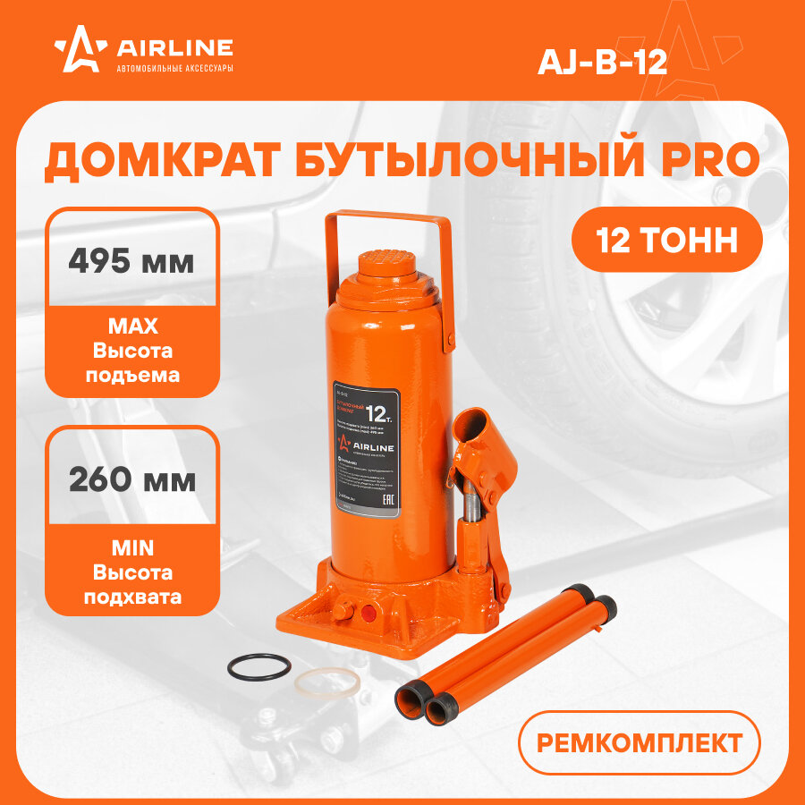 AIRLINE aj-b-12 (AJB12) домкрат бутылочный 12т pro (min - 260 мм max - 495 мм) (aj-b-12)