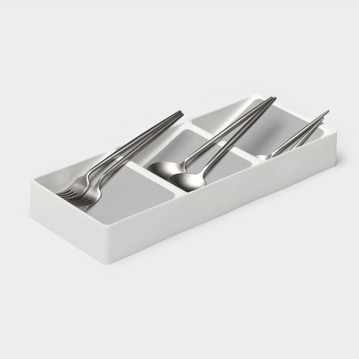 10 цен на Подставка для специй Griten, 3 секции, пластик с силиконовой вставкой, 39×15×5 см, белая