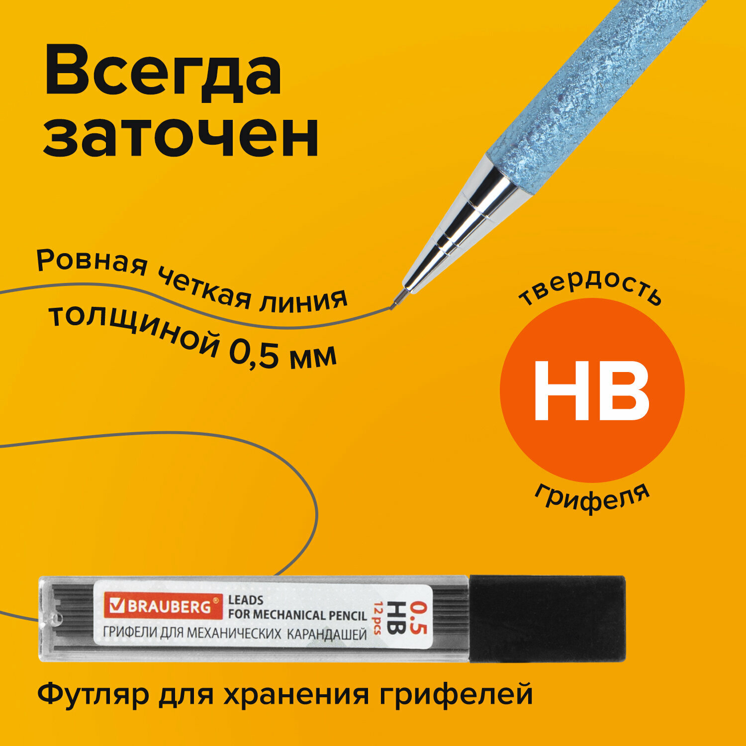 BRAUBERG Механический карандаш со сменными грифелями HB, 0,5 мм, 12 шт. 180335