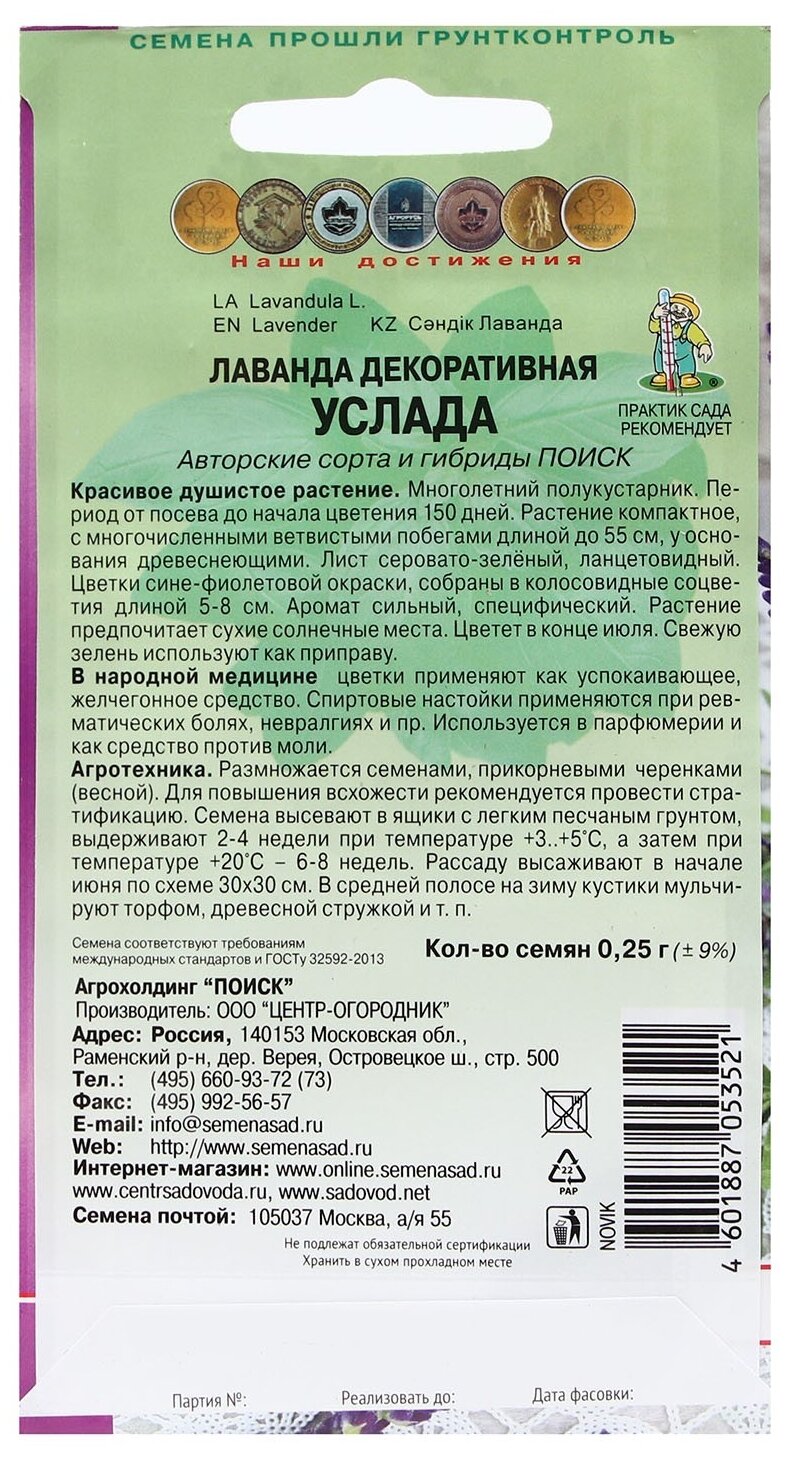 Семена Лаванда Услада 0,25г (Поиск) Аптека на грядке информация: