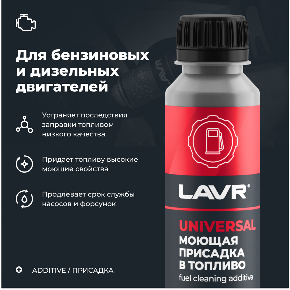 Отзывы на Присадка В Топливо Моющая, С Катализатором Горения Универсальная (На 40-60 Л Бензина Или Дизельного Топлива), 120 Мл LAVR арт...
