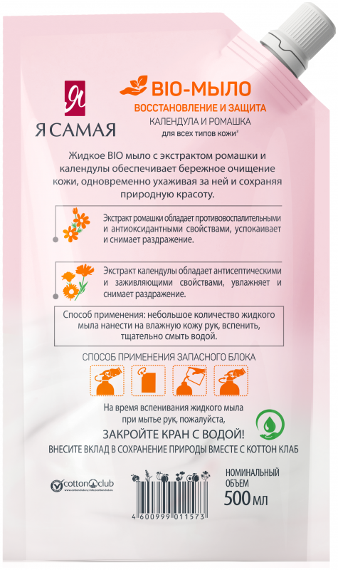 Я самая, Мыло жидкое ромашка и календула, BIO, дой-пак, 500 мл
