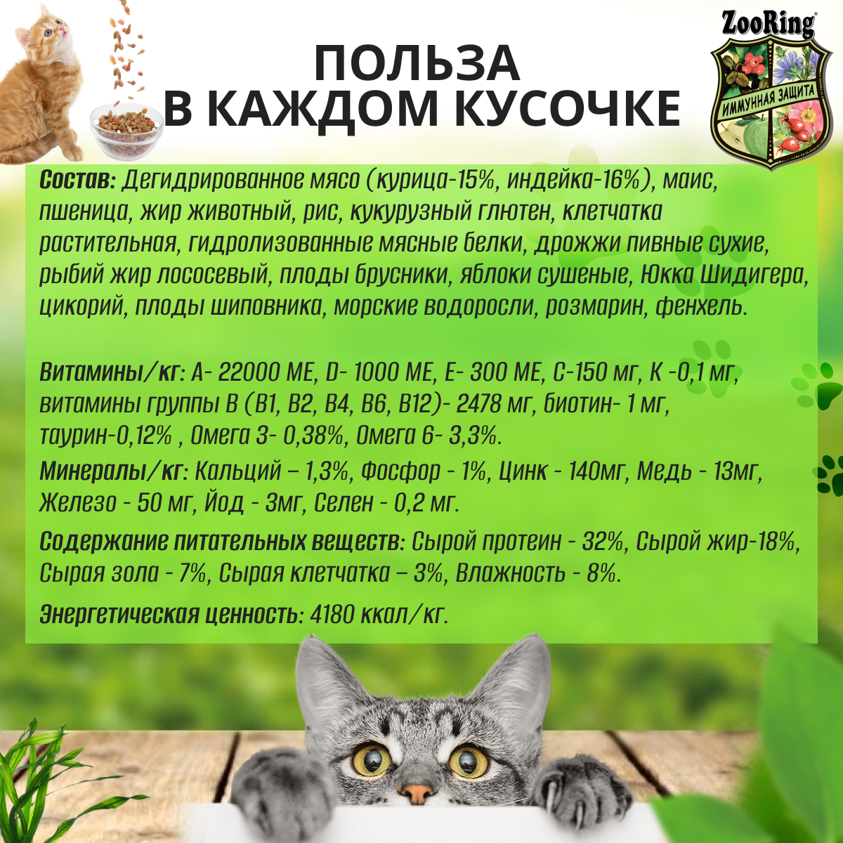 Сухой корм для кошек ZooRing с цыпленком 1.5 кг (цыплёнок С пребиотиком сухой корм для молодых и взрослых кошек всех пород)