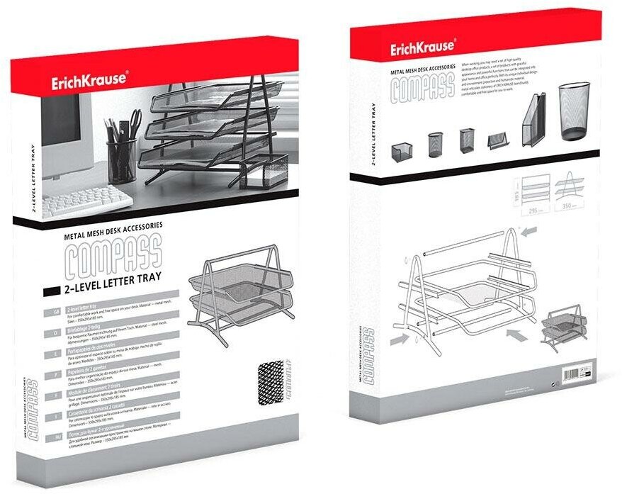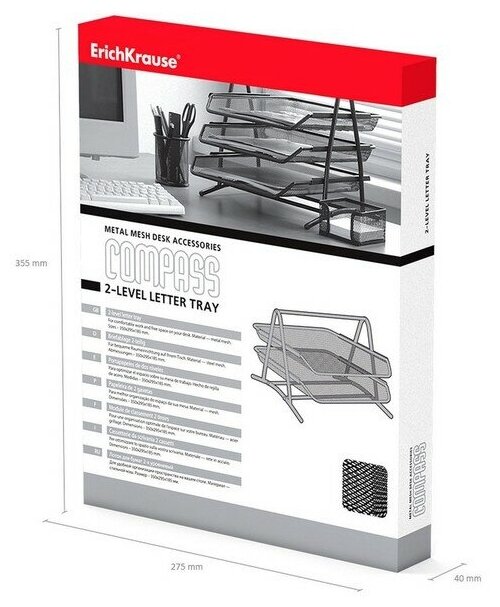 Лоток для бумаг горизонтальный 2-х уровневый, ErichKrause Compass Classic, металлическая сетка, чёрн . информация:
