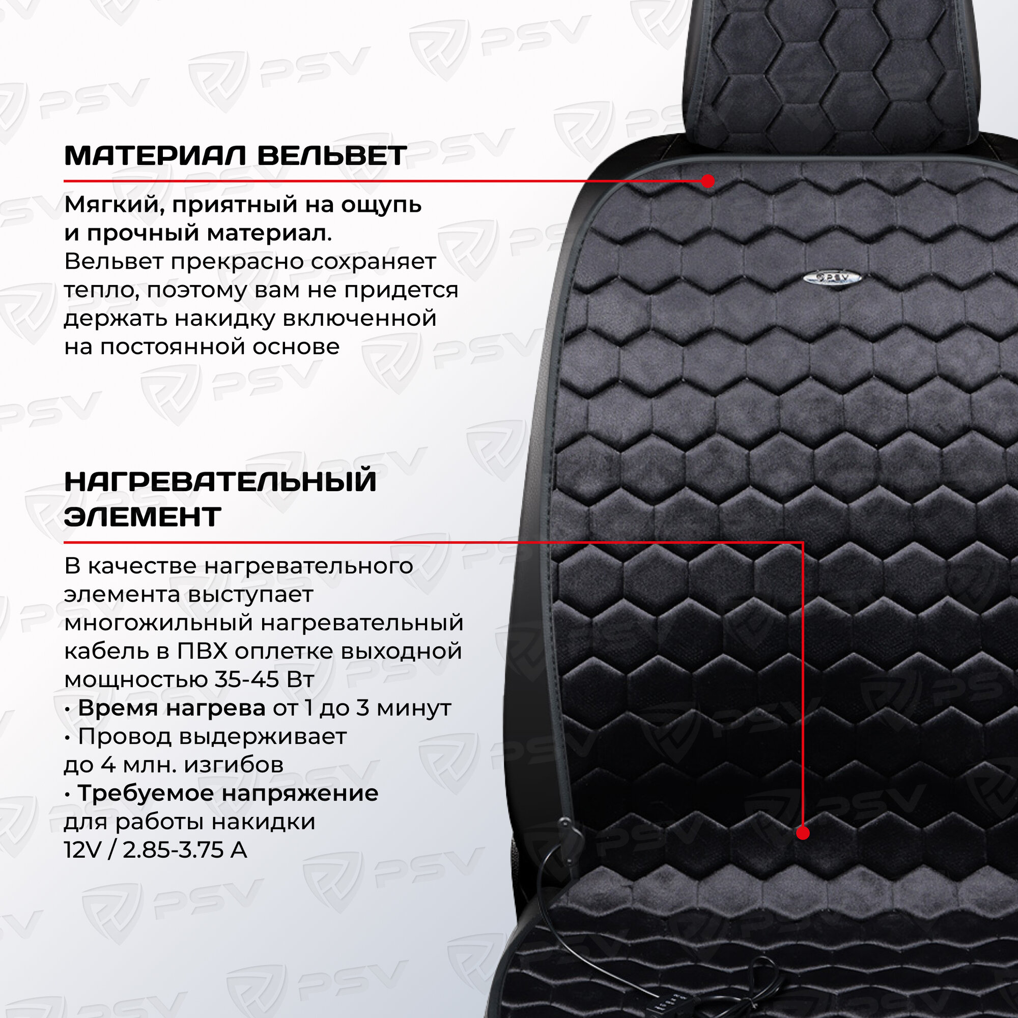 PSV 132251 Накидка на сиденье с подогревом PSV FERVOR 2-х режимный (Красный) (1шт.) 2 194 ₽