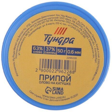Припой тундра, ПОС 63, на катушке, 0.6 мм, 50 г информация: