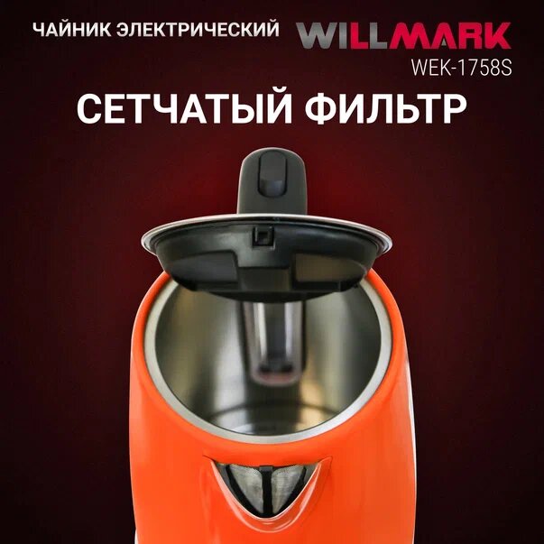 Чайник электрический WILLMARK WEK-1758S 1.7 л, 2.2 кВт, оранжевый информация:
