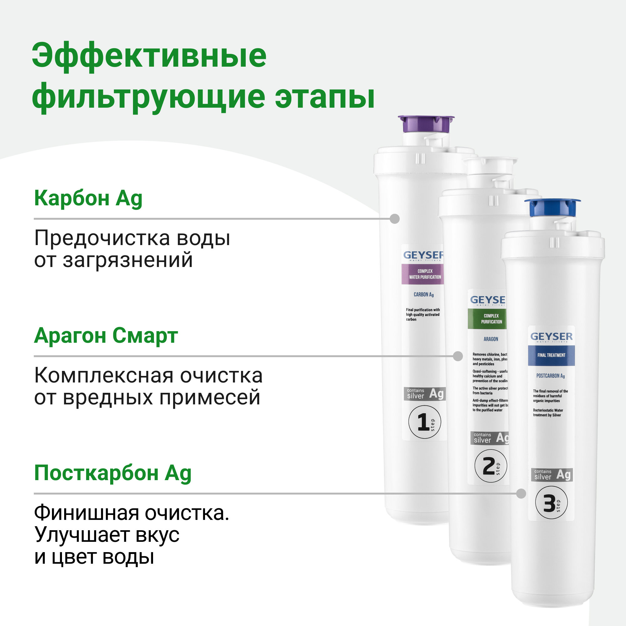 Фильтр для воды под мойку Гейзер Смарт универсальный, без крана, сочетание уникальных технологий Каталон + Арагон, 11050 информация: