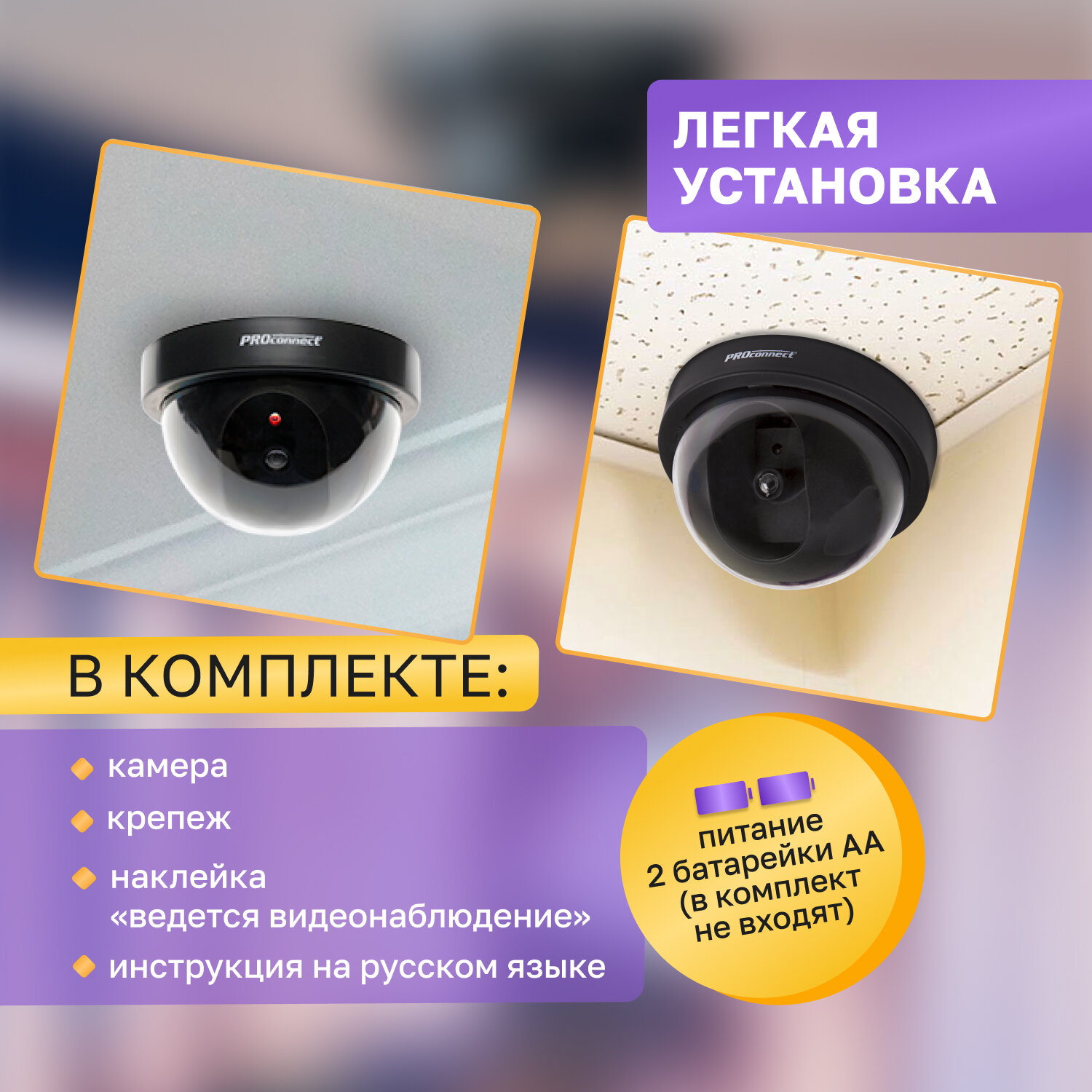 Муляж камеры PROconnect, внутренний, купольный, LED-индикатор, 2хАА, черный