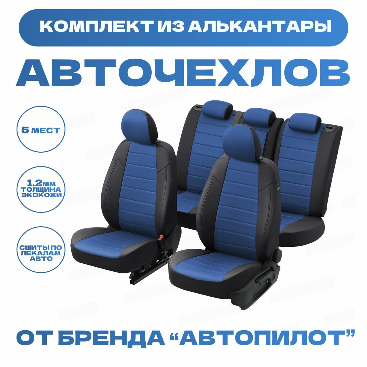 10 цен на Модельные авточехлы АВТОПИЛОТ для Chevrolet Aveo (седан, 2003-2012гг) / Ravon Nexia R3 (c 2015г) алькантара, черно-синие