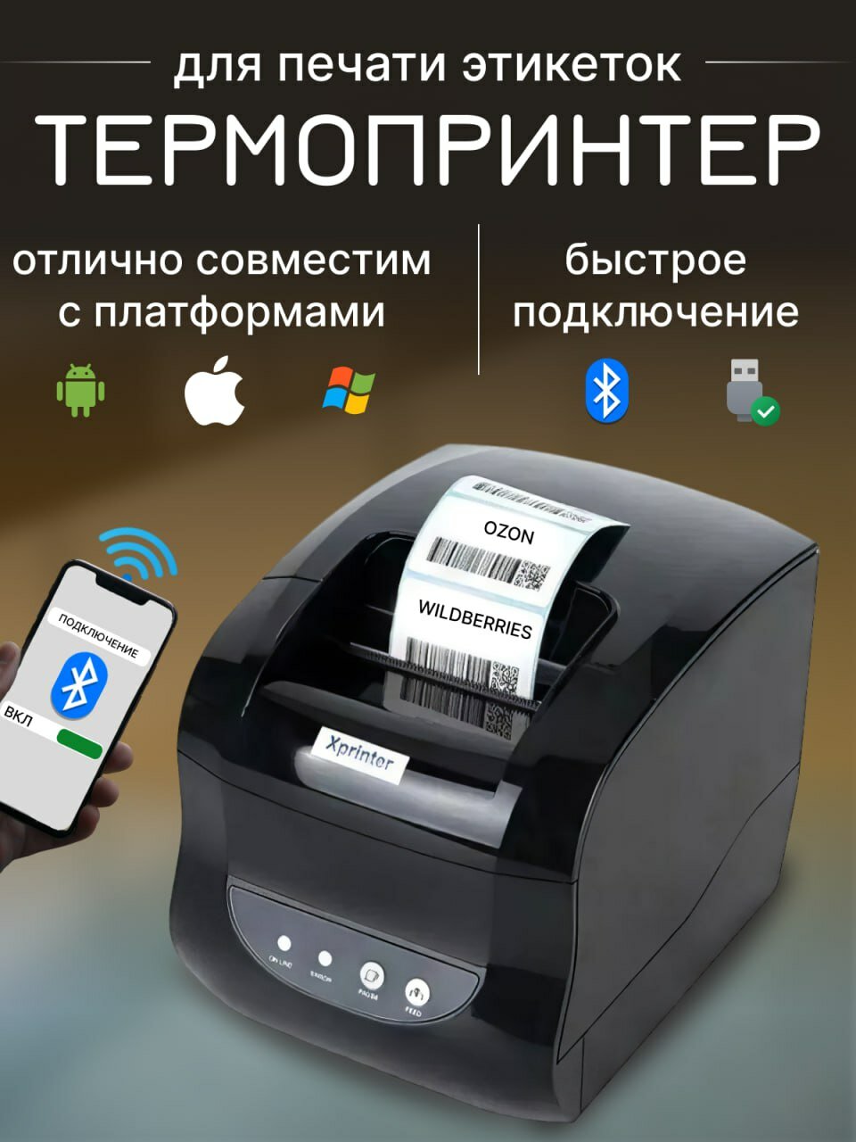 Термопринтер для печати этикеток стикеров для маркетплейсов xprinter xp365b информация: