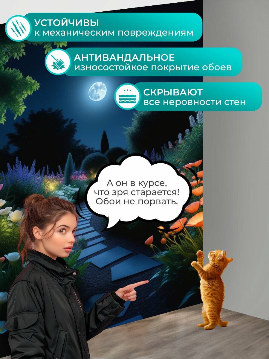 Отзывы на Фотообои моющиеся ударопрочные "Сад с цветами, освещенными лунным светом" 200x300 см. флизелиновые на стену