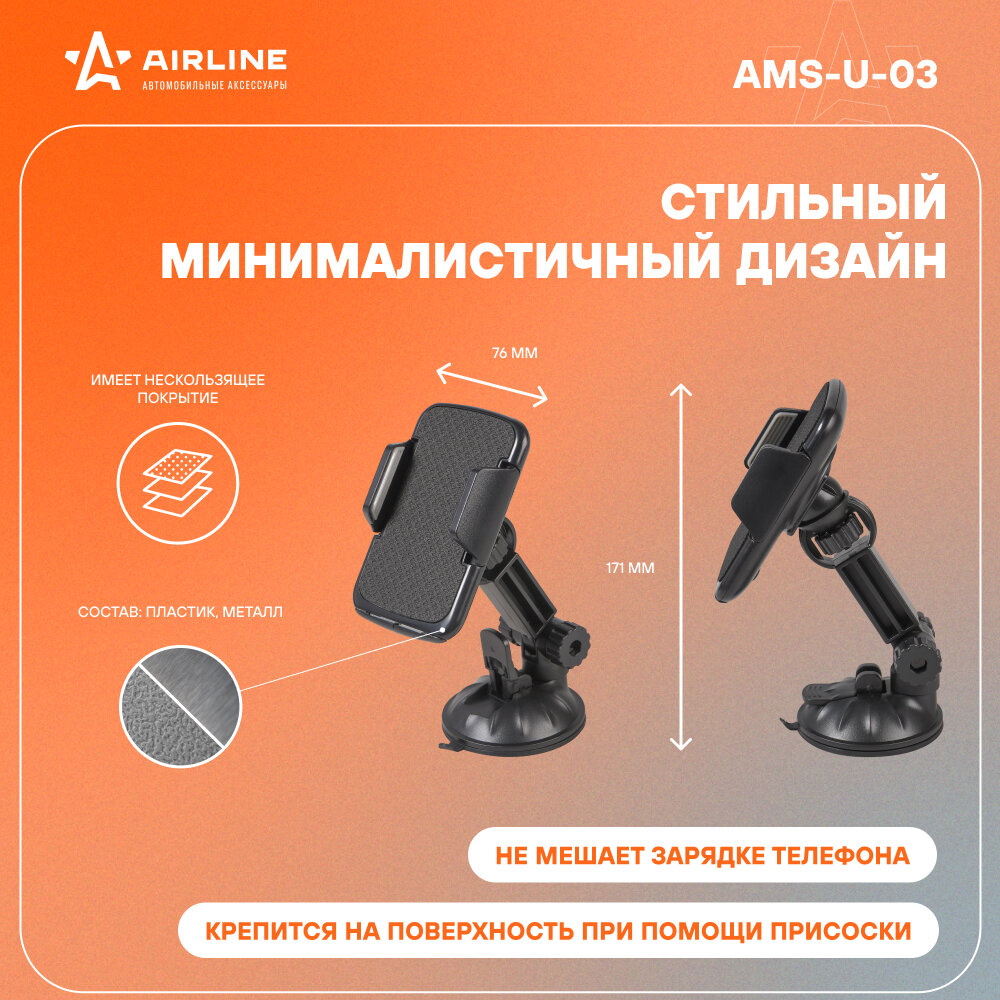 Держатель для телефона автомобильный присоска на лобовое стекло на короткой штанге AMS-U-03 AIRLINE информация: