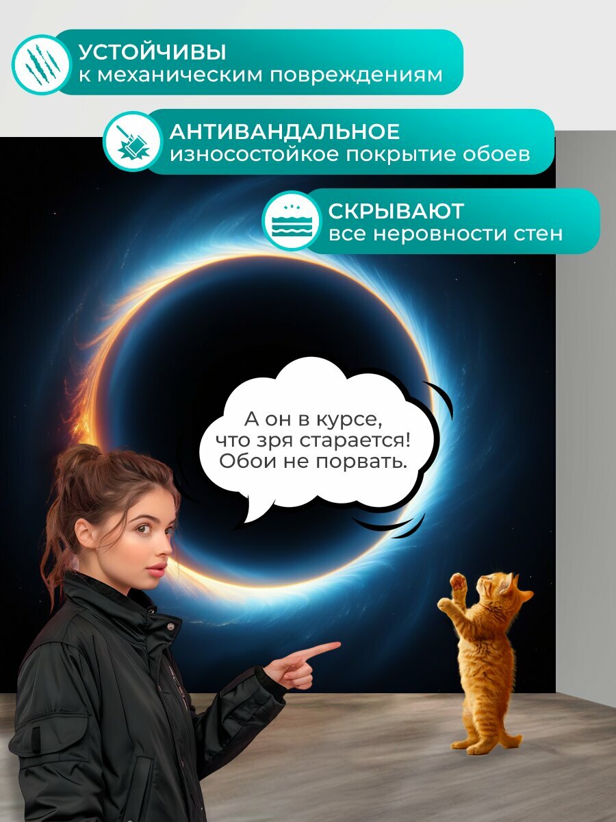 Отзывы на Фотообои моющиеся ударопрочные "Вихрь световой спирали вокруг черной дыры" 300x300 см. флизелиновые на стену
