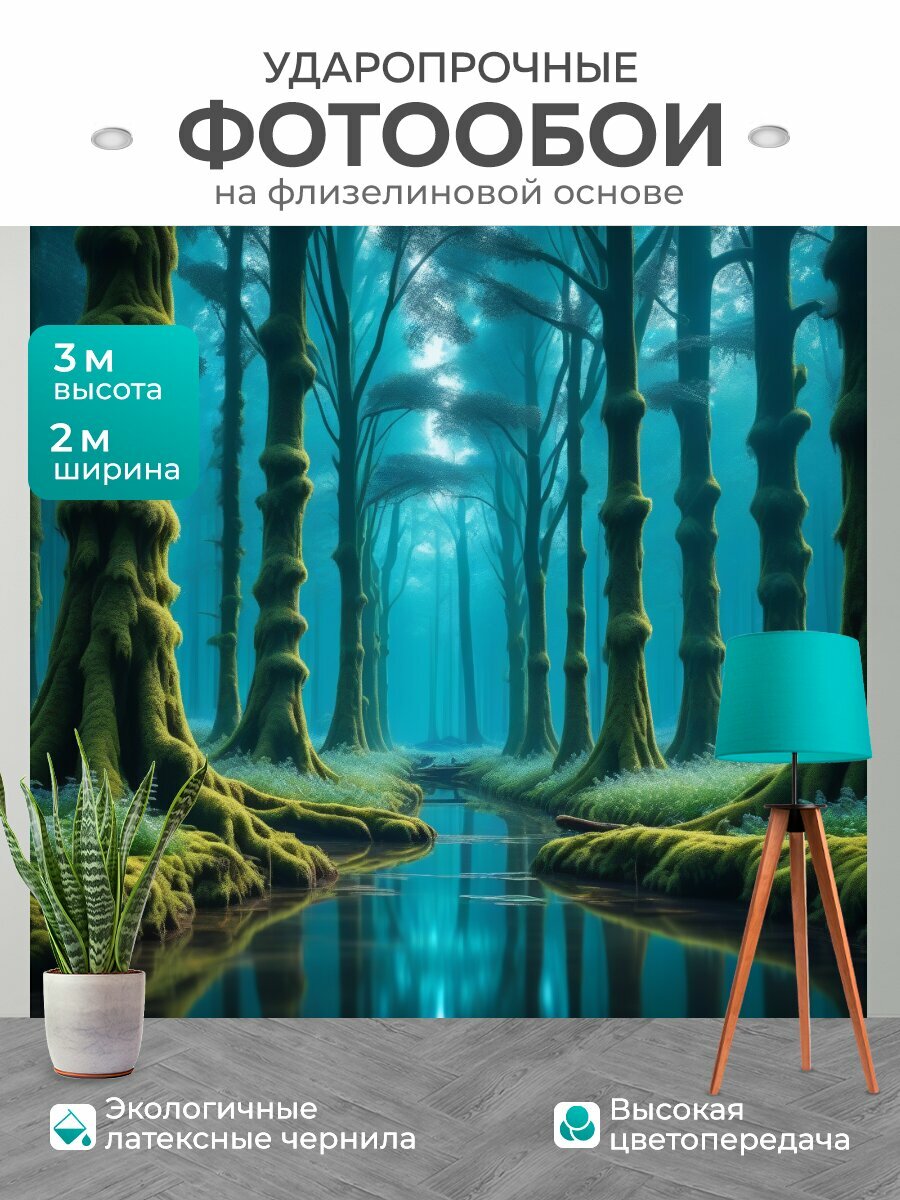 Фотообои моющиеся ударопрочные "Плавающие деревья и сказочный лес" 300x300 см. флизелиновые на стену информация: