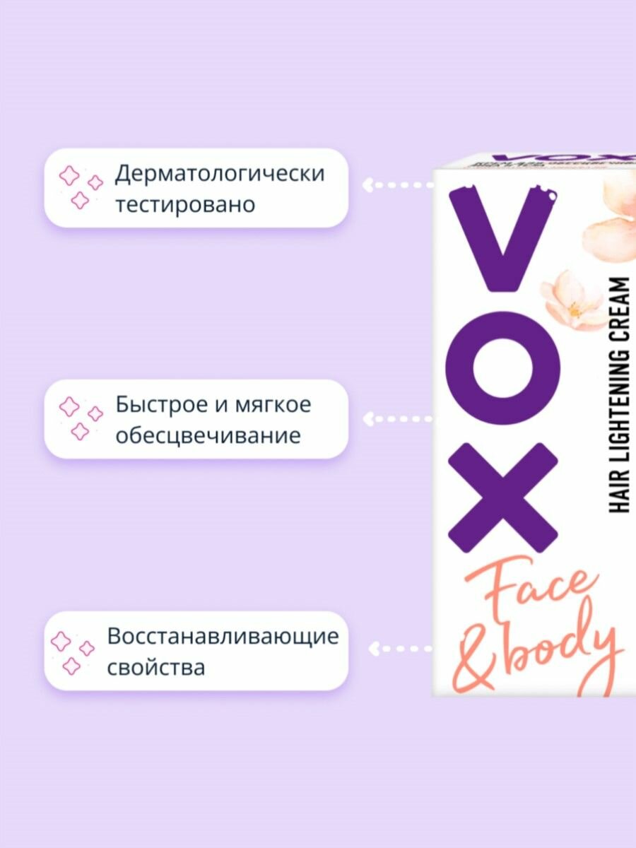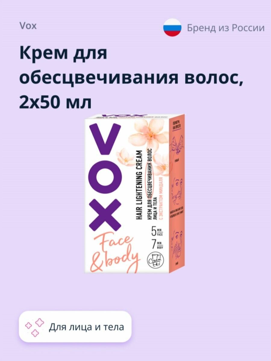 Крем для обесцвечивания волос VOX для лица и тела 2x50 мл информация: