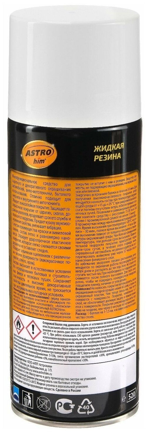 Жидкая резина ASTROhim AC-651, белый аэрозоль 520мл информация: