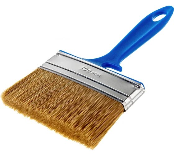 Кисть малярная флейцевая плоская 4" (101 мм), натуральная щетина, пластмассовая рукоятка, 1 штука/ кисточка для краски, лака, ЛКМ