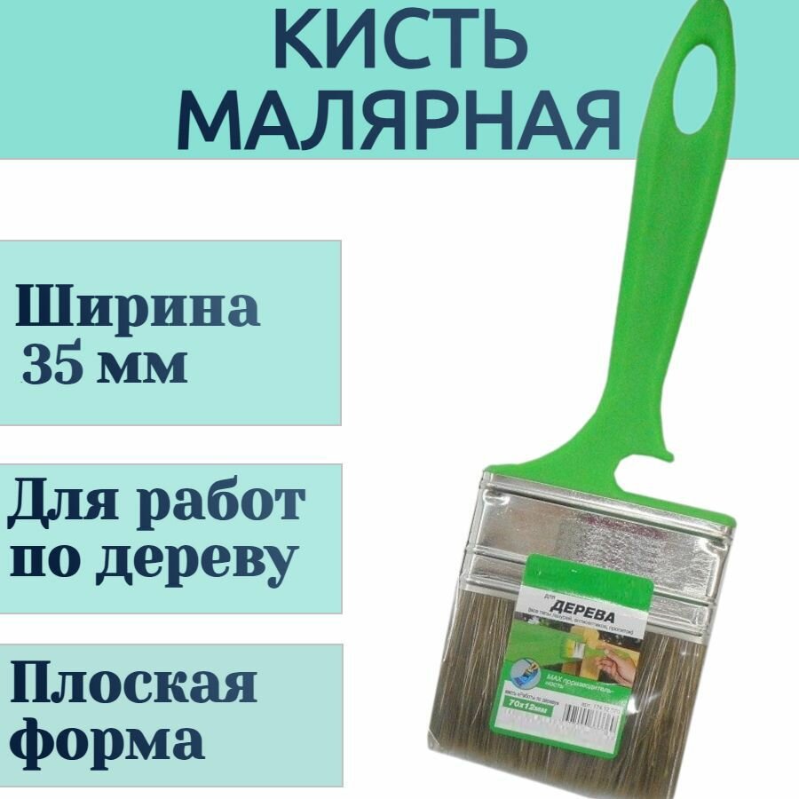Кисть КФ 35Х10 смеш ЩЕТ пласт ЗЕЛ РУЧ ПО дереву 94664 акор