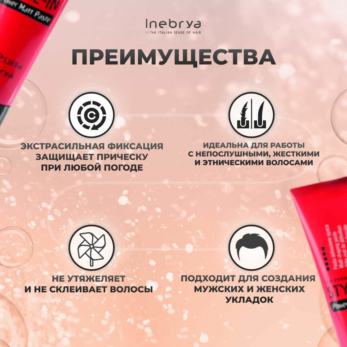 Паста для волос матовая моделирующая экстрасильной фиксации Inebrya Style-In Power Matt Paste, 100 мл информация:
