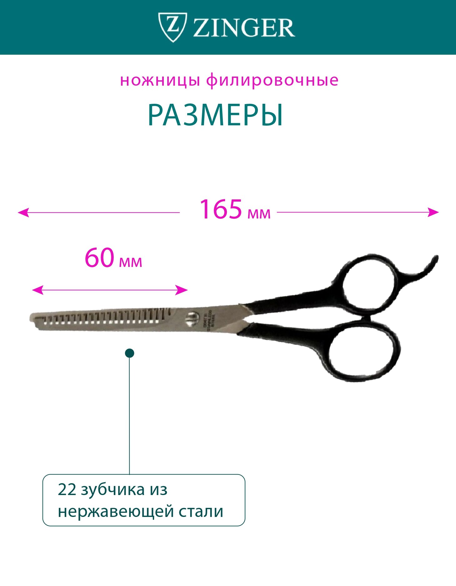 Ножницы парикмахерские филировочные Zinger 10654 TTI информация: