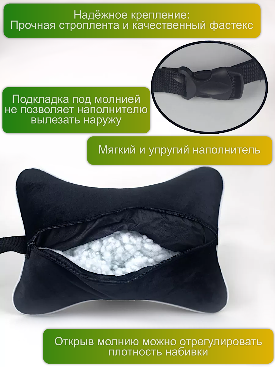 Подушка под шею с эффектом памяти для Cadillac SRX (2003-2009) / Кадилак СРХ, Экокожа, Чёрный с белым