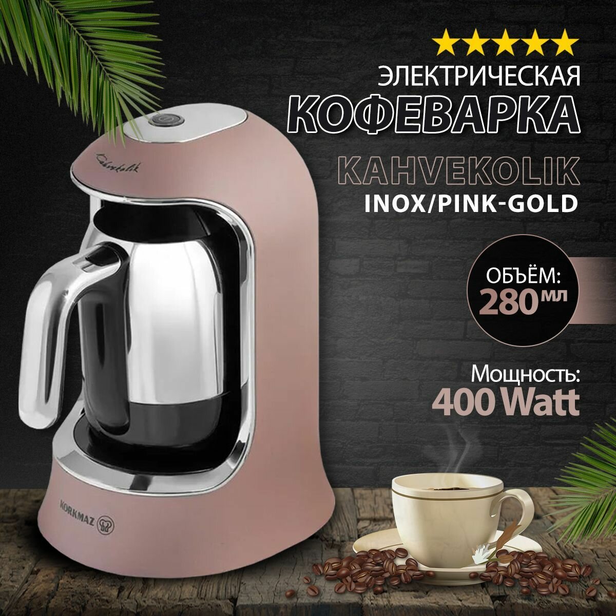 Кофеварка электрическая, кофемашина, турка для кофе, 280мл, Korkmaz Kahvekolik, 400W с автоотключением, розовое золото 10 379 ₽