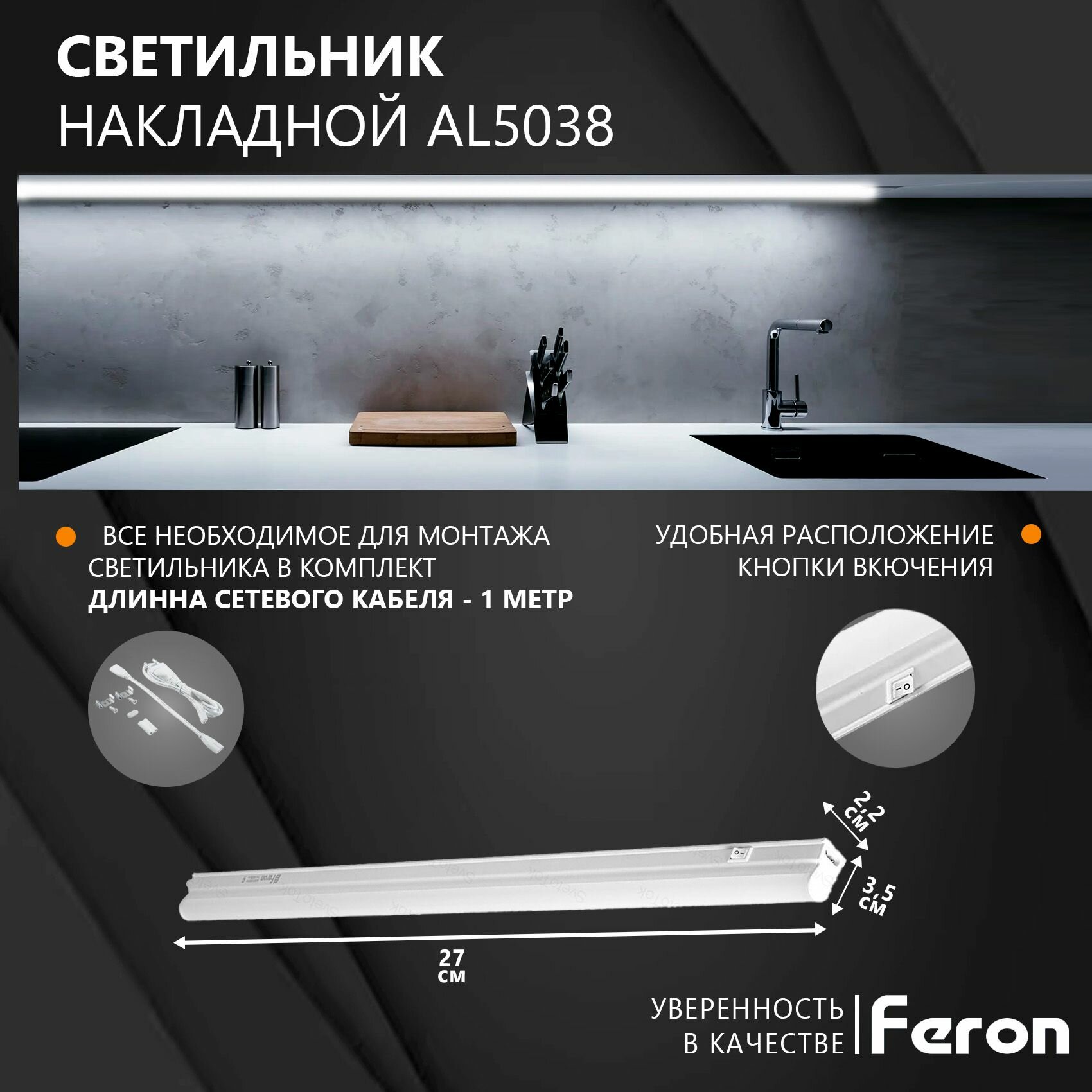 Светильник светодиодный с выключателем Feron 7 Вт 4000К IP20 AL5038 345 ₽