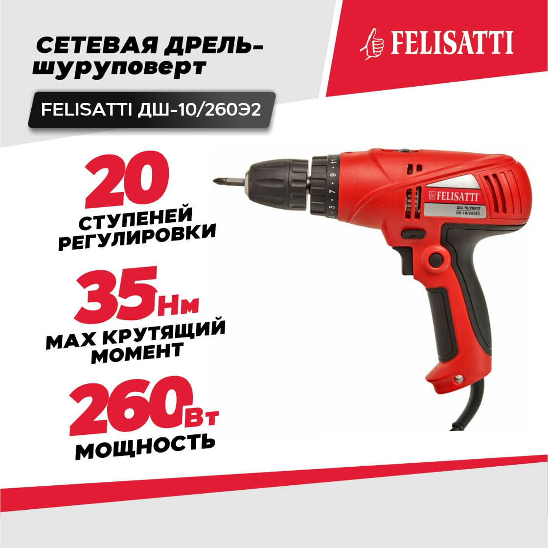ДШ-10/260Э2 сетевая дрель-шуруповерт FELISATTI, шт FELISATTI