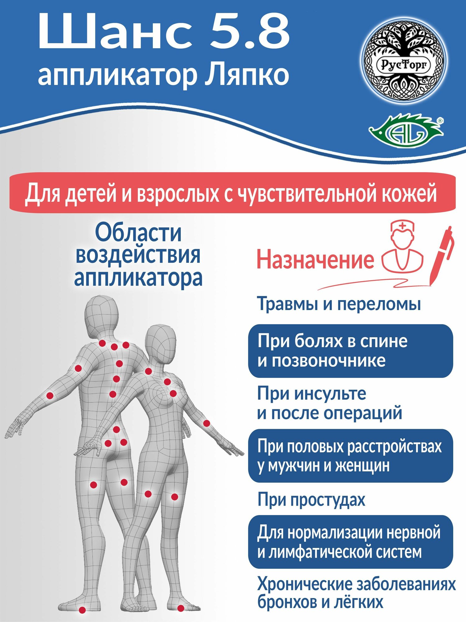 Массажный коврик Аппликатор Ляпко Шанс 5,8 (размер 118х235 мм), синий. информация: