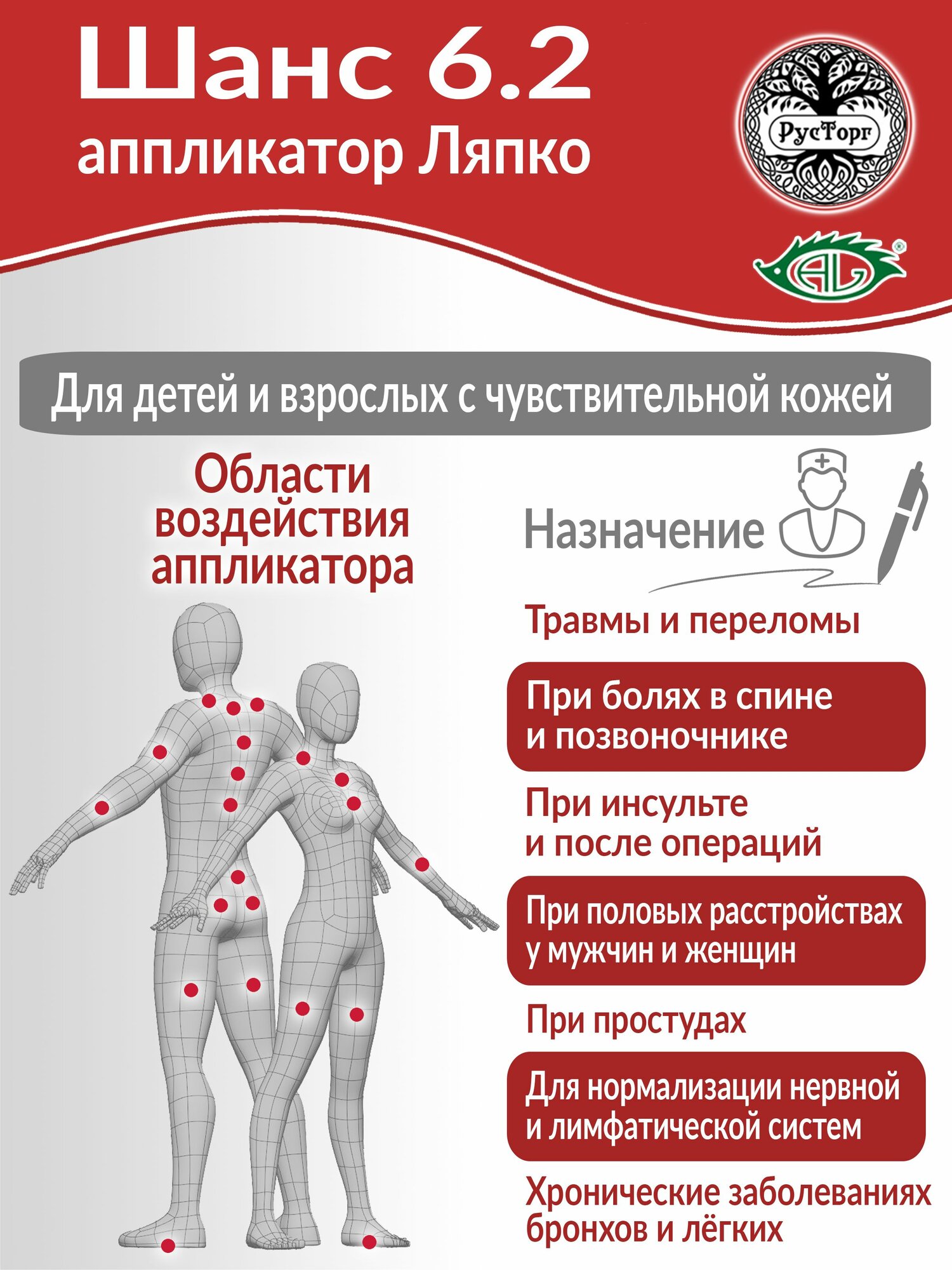 Массажный коврик Аппликатор Ляпко Шанс 6,2 (размер 118х235 мм), красный. информация: