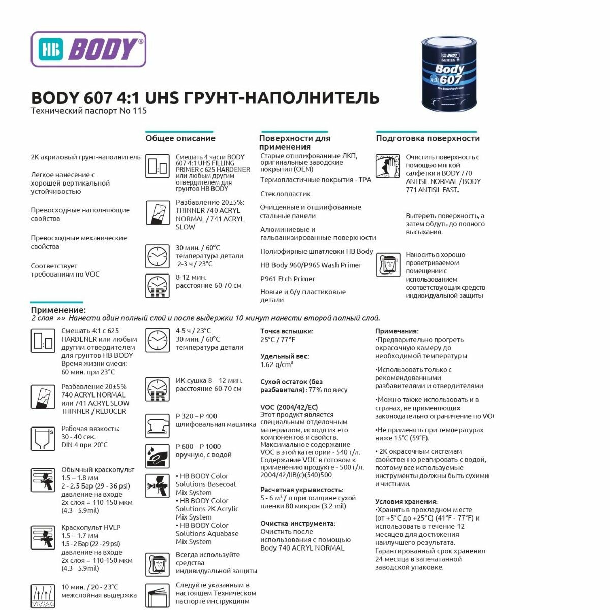 Грунт-наполнитель UHS 2К акриловый 4:1 с высоким содержанием сухого остатка, черный 0,8 л + отвердитель 0,2 л/ HB BODY 607 + HB BODY 625 / для ремонта кузова автомобиля информация: