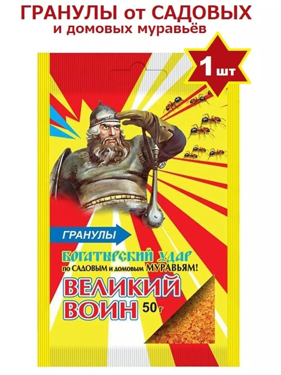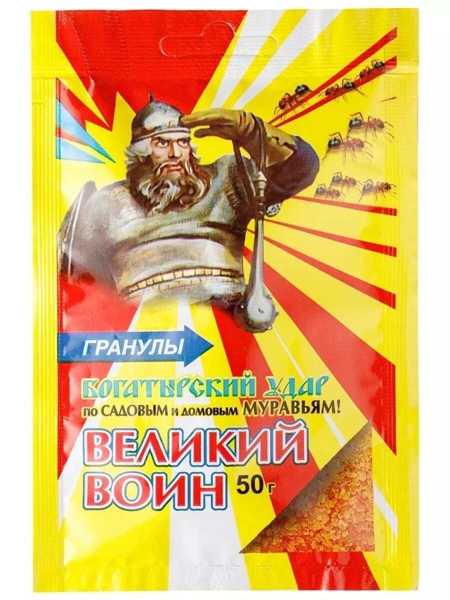 Великий воин богатырский удар по садовым и домовым муравьям 50 г гранулы