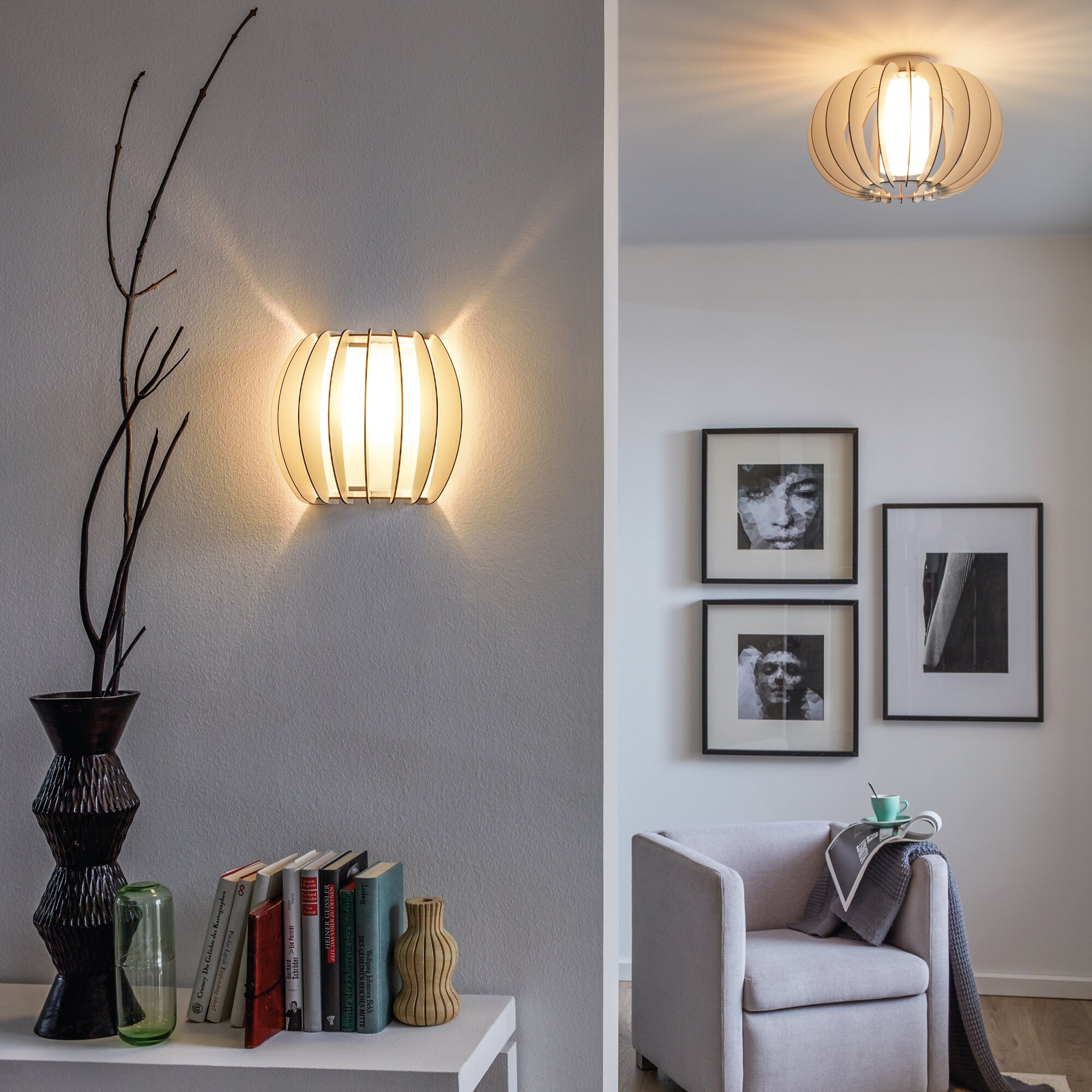 Бра STELLATO 2, 1х60W (E27), L285, H250, A140, сталь, белый/дерево, стекло, белый