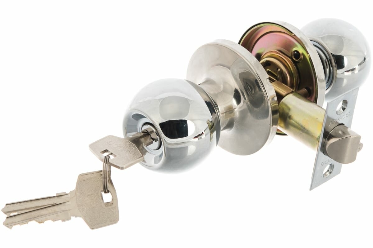 Ручка дверная межкомнатная хром блестящий с защелкой, заверткой и ключами комплект