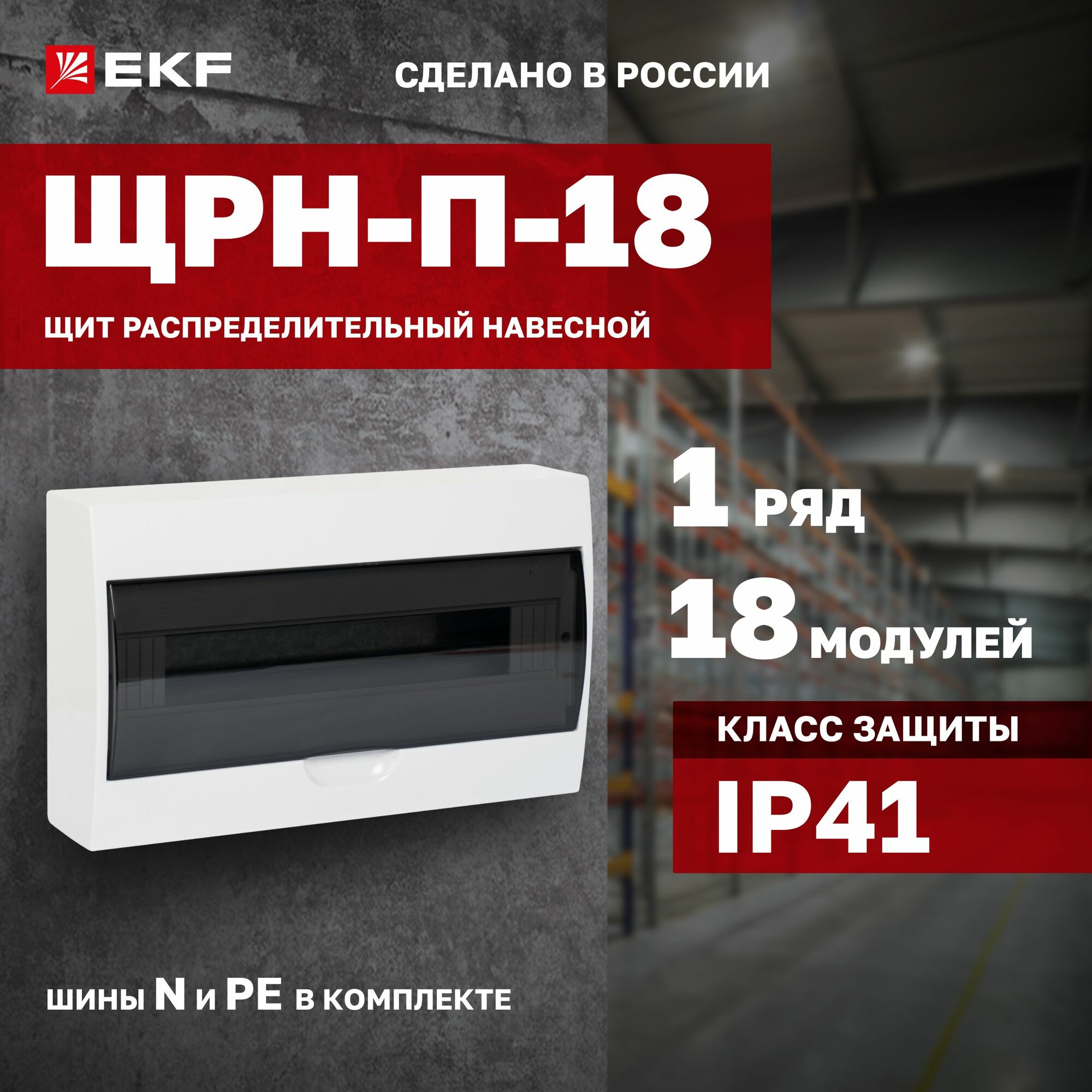 Отзывы на Щиток (бокс) электрический для автоматов на 18 модулей, 1 DIN-рейка, 1 ряд, шины N и PE в комплекте, пластиковый - Щит распределительный навесной ЩРН-П-18 IP41 EKF PROxima