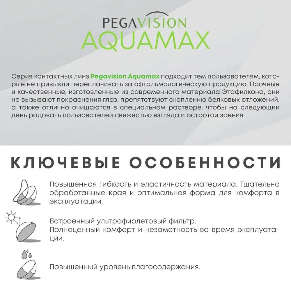 Двухнедельные контактные линзы Pegavision Aquamax 6 pk (BC 8.6; D -11.50) 698 ₽