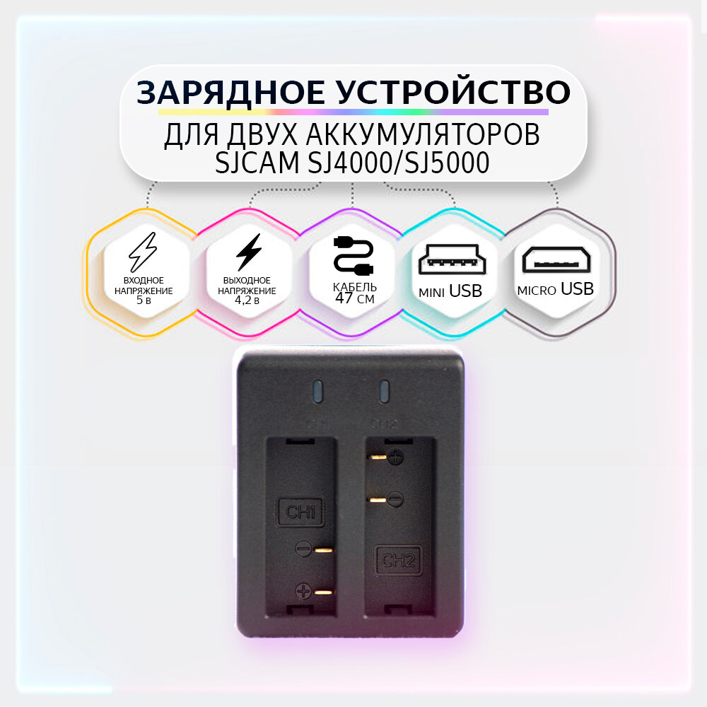 Зарядное устройство SJCAM SJ4000/SJ5000, для аккумуляторных батарей, цвет черный информация: