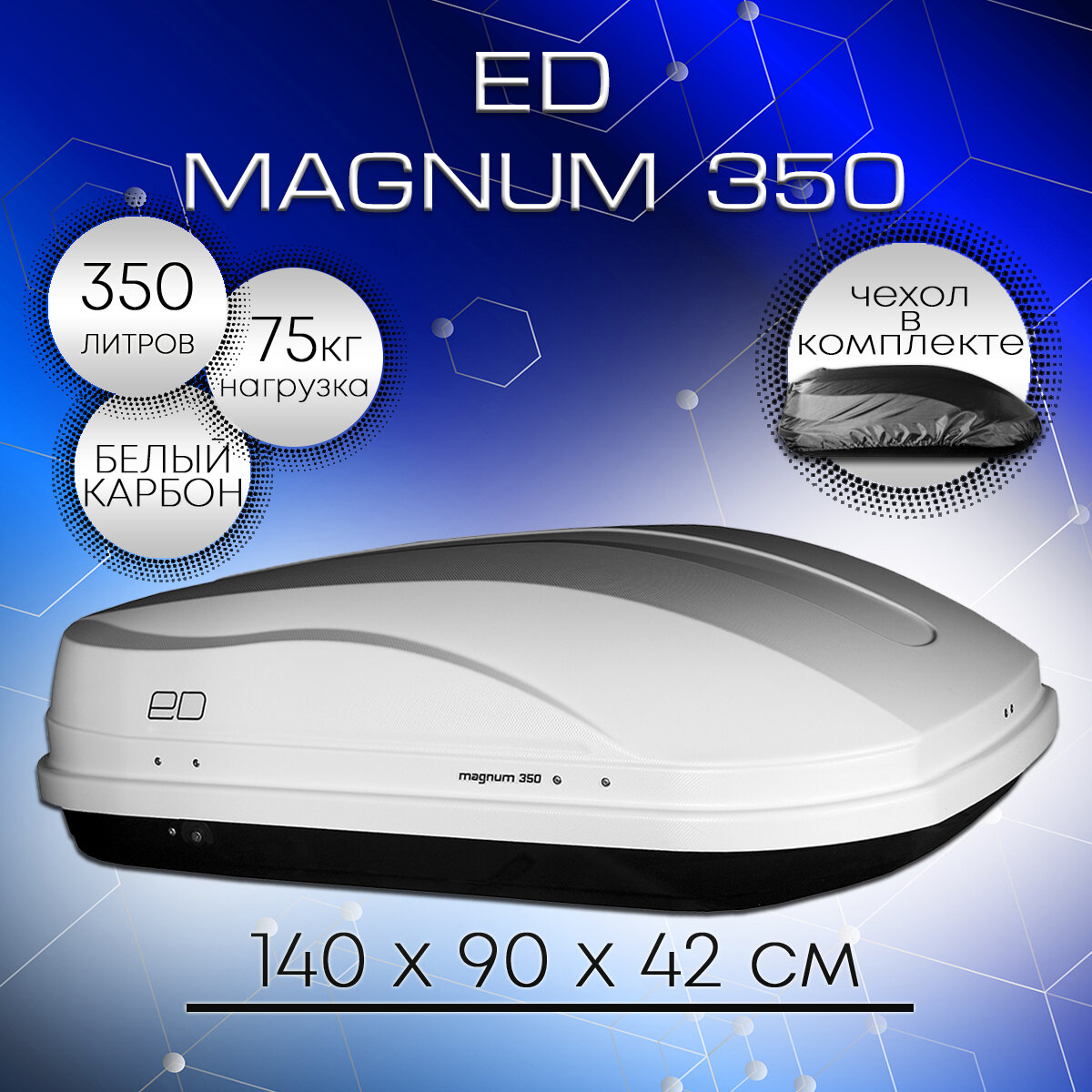 Бокс на крышу ED Магнум 350л, белый карбон, 140х90х42, двухсторонний, быстросъем, чехол в комплекте, арт:ED5-042B 22 633 ₽