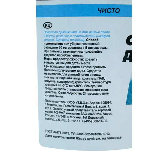 10 цен на Средство для мытья пола 1-2 Pro "Свежесть Атлантики", концентрат, 1000 мл (БХПЛС-1)