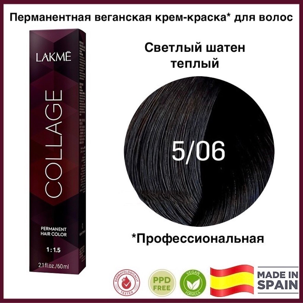 LAKMÉ, COLLAGE, Перманентная крем-краска для волос №5/06, Светлый шатен теплый, 60 мл
